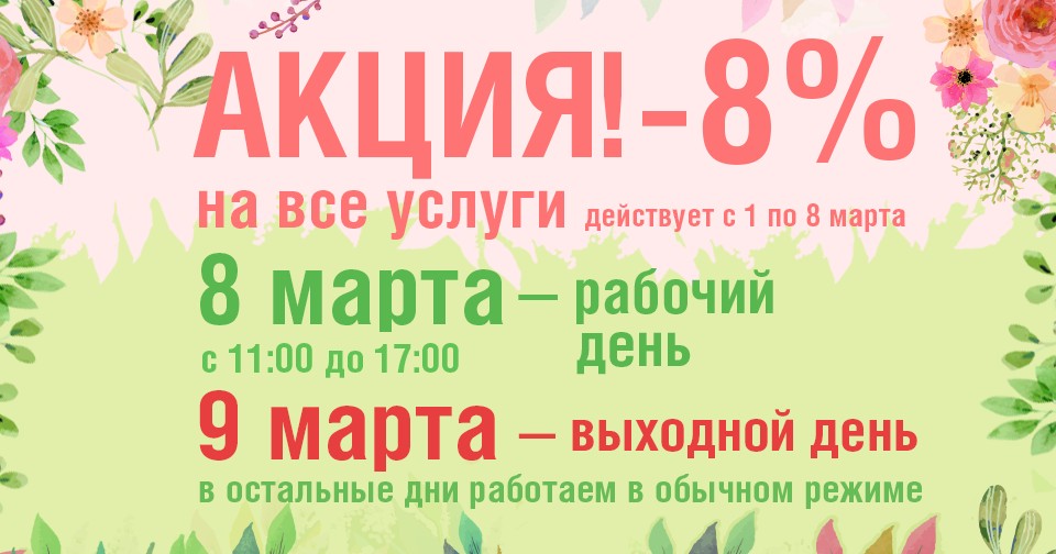 Скидка -8% и график работы 8-го марта