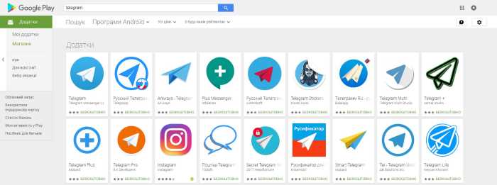 На этом рисунке показан результат поиска программ по запросу Telegram. Кроме настоящей программы, видим много копий, в которых могут находиться вирусы.